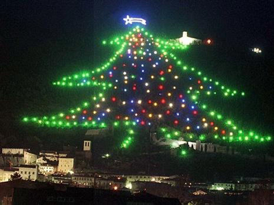 吉尼斯世界紀錄中,世界上最大的圣誕樹位于意大利小鎮(zhèn)古比奧。這棵高650米的圣誕樹沒有針葉,它其實是一座無數(shù)燈泡妝點起來的小山峰。