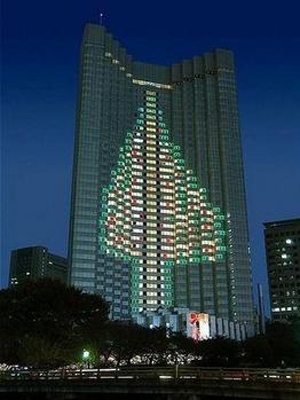 在日本東京的赤阪王子飯店,有一顆由燈光構成的100米高的圣誕樹。
