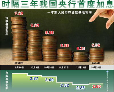 2003年以來,面對經(jīng)濟(jì)中出現(xiàn)的貸款、投資、外匯儲備快速增長等新變化,穩(wěn)健的貨幣政策內(nèi)涵開始發(fā)生變化,適當(dāng)緊縮銀根,多次上調(diào)存款準(zhǔn)備金率和利率。