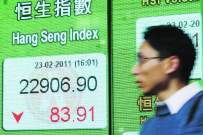 2月23日,市民從香港中環一家銀行的恒生指數電子顯示屏前走過。當日,香港恒生指數跌83.91點,報收于22906.90點。當天,日本東京股市日經225種股票平均價格指數較前一交易日跌幅為0.80%。韓國首爾股市綜合指數跌幅為0.42%。菲律賓馬尼拉股市主要股指跌幅為0.71%。新加坡股市海峽時報指數跌幅為0.57%。印度孟買股市敏感30指數跌幅為0.64%。澳大利亞悉尼股市主要股指跌幅為0.22%。當天,新西蘭股市NZX-50指數上漲13.36點,漲幅為0.40%。