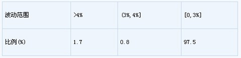 為前一日價格,每日波動率為,樣本數為638個,統計結果如表1和表2所示。在樣本區間內,焦炭現貨價格日漲跌幅度超過4%的僅占1.7%,漲跌幅度低于4%的約占98.3%。另外,山西焦聯焦炭電子市場設置的漲跌停板為4%。