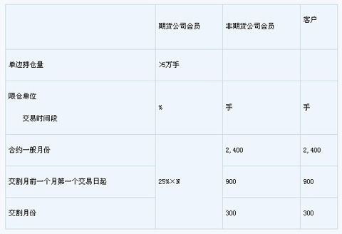 4.期貨公司會員、非期貨公司會員和客戶的焦炭期貨合約在不同時期的限倉比例和持倉限額具體規定如下: