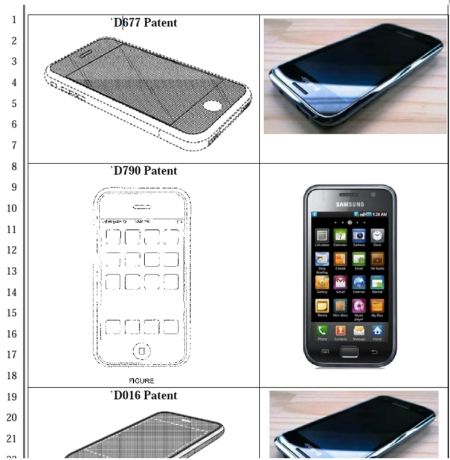 | 蘋果在訴狀中將自己的專利與三星手機進行對比 |