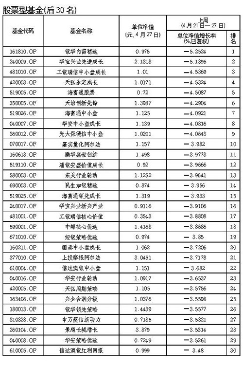 銀華基金公司旗下,2009年下半年上市的銀華內(nèi)需精選以-5.25%的凈值增長(zhǎng)率成為本周(4月21日-27日)股票型基金收益倒數(shù)第一,其今年年漲幅為-16.91%。