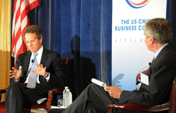 美國財(cái)政部長蓋特納當(dāng)?shù)貢r(shí)間3日在美中貿(mào)易全國委員會(huì)舉辦的座談會(huì)上表示,美國和中國在眾多經(jīng)濟(jì)領(lǐng)域擁有廣泛的共同利益,雙方可以進(jìn)一步深化雙邊經(jīng)濟(jì)合作。新華社記者