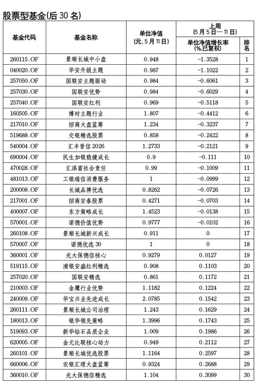 景順長城基金管理有限公司旗下,2011年3月成立的景順長城中小盤以-1.35%的凈值增長率成為本周(5月5日-11日)股票型基金收益倒數(shù)第一,其今年年漲幅為-5.2%。