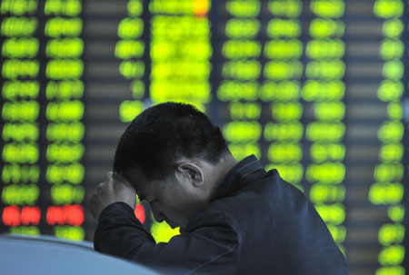 5月23日,股民在沈陽一證券交易大廳關注大盤走勢。 當日,滬深股市大幅下挫,上證綜指和深證成指分別以2774.57點和11742.19點報收,較前一交易日收盤大跌2.93%和3.44%。 受中國滬深股市下挫和希臘債務擔憂的影響,亞太地區主要股市普遍下跌。東京股市日經225種股票平均價格指數收于9460.63點,跌幅為1.52%。中國香港股市恒生指數收于22711.02點,跌幅為2.11%。澳大利亞悉尼股市主要股指收于4643點,跌幅為1.88%。