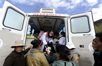 近年來,西藏衛生事業發展迅速,廣大農牧民身體健康水平和農牧民醫療保健水平有了明顯的提高。圖為西藏林芝地區林芝縣八一鎮醫療衛生院的巡回醫療車開進巴吉村,醫務人員在被稱作“農村流動醫院”的醫療車里為該村的群眾看病,并免費發放急需藥品。記者