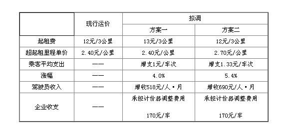 按照現行運價結構,此次調價提出兩個方案。