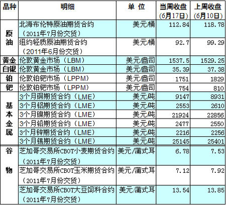 國際大宗商品期貨價(jià)格明細(xì)表[2011-06-20]