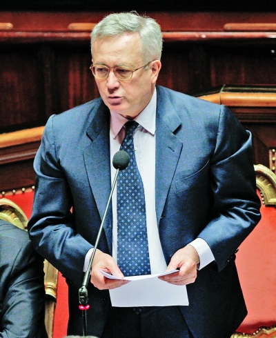圖為意大利經濟部長特雷蒙蒂14日在參議院就財政緊縮計劃發表講話。