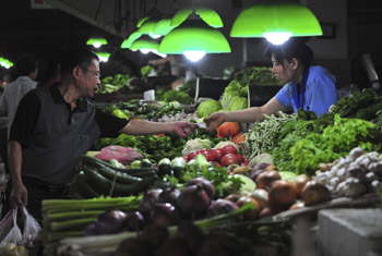 8月9日,沈陽市民在一家農(nóng)貿(mào)市場選購蔬菜。新華社發(fā)(田衛(wèi)濤攝) |