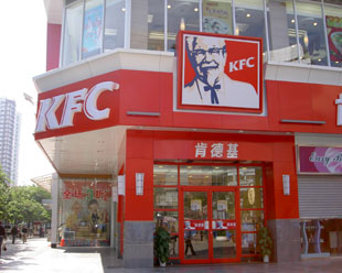 肯德基自1987年在北京前門(mén)開(kāi)出中國(guó)第一家餐廳到現(xiàn)在,來(lái)到中國(guó)已經(jīng)21年了。21年來(lái),中國(guó)肯德基已在450個(gè)城市開(kāi)設(shè)了2100余家連鎖餐廳,遍及中國(guó)大陸除西藏以外的所有省、市、自治區(qū),是中國(guó)規(guī)模最大、發(fā)展最快的快餐連鎖企業(yè)。 |