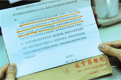 舉報信稱故宮圖書館善本書庫部分圖書丟失。