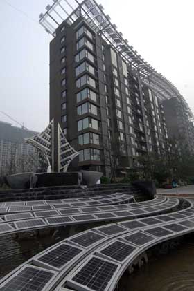 德州市蔚來城的小區建筑和綠化景觀大量利用太陽能科技。記者 郭緒雷