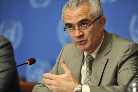10月19日,在瑞士日內瓦萬國宮,國際勞工組織就業部執行理事何塞·曼努埃爾·薩拉薩爾—希里納奇斯在新聞發布會上發言。 當日,國際勞工組織召開發布會,公布世界青年就業形勢最新情況,并指出日益嚴峻的就業形勢導致全球范圍內的“恐懼”一代。