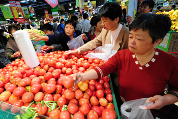 商務部25日公布的監測數據顯示,食用農產品價格繼續回落。截至上周(10月17日至23日),18種蔬菜平均批發價格比前一周下降2.5%,其中生菜、大白菜、白蘿卜降幅分別為8.8%、8.3%和8.3%,油菜、芹菜、西紅柿分別下降8.2%、8%和7.6%。雞蛋市場貨源充足,零售價格比前一周下降0.8%,降幅擴大0.4個百分點,比9月底下降1.6%。