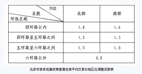 附件:北京市享受優惠政策普通住房平均交易價格區位調整系數表