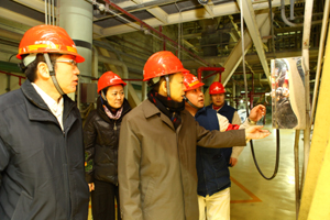 1月22日,神華集團國華電力公司總經理王樹民(左三)、書記夏利(左二)到現場檢查三河公司控制電源箱。資料照片 |
