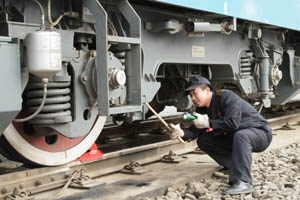 神華集團包神鐵路公司春運期間加強電車運用管理,深入探討電力機車全面運用后機車交路方式和乘務員乘務方式,優化電力機車運用方案,確保旅客運輸和貨物運輸行車安全。圖為:神華集團技術能手、包神鐵路公司電力機車司機趙樂出乘前認真檢查機車。資料照片 |