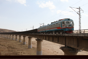 “東線運量9740萬噸,奮斗目標9900萬噸;北線運量必保4800萬噸,力爭5000萬噸”。這是神華包神鐵路公司領導班子給神華集團的莊嚴承諾。節日期間,包神鐵路公司確保東線裝車快進快出,北線優先保證過古店口神華煤運輸和煤制油、煤化工原料及成品運輸,積極組織區內、管內電煤運輸。圖為滿載電煤的運煤專列通過響沙灣大橋。資料照片 |