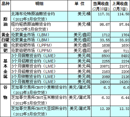 國際大宗商品期貨價格明細表[2012-02-13]