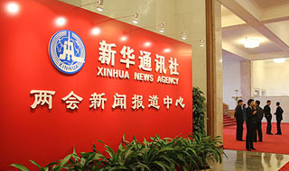 位于人民大會堂內的新華社兩會新聞報道中心。