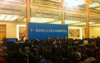 3月4日,人民大會堂,十一屆全國人大五次會議新聞發布會11:00準時舉行,大會發言人李肇星正在發布大會議程及相關安排情況。