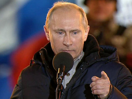 普京說(shuō):“感謝那些祝!畟ゴ蠖砹_斯’的人們。我想問(wèn)你們,我們會(huì)勝利嗎?……我們勝利了!……我們贏得公正、誠(chéng)實(shí)!……謝謝你們!”