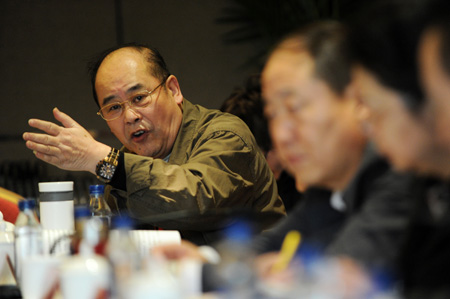 在工商聯界小組討論中,全國政協委員劉鶴章針對小微企業的未來發言。