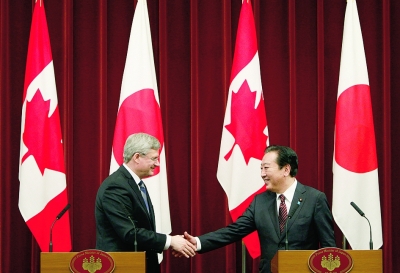 野田佳彥當(dāng)日與哈珀舉行會(huì)談,雙方表示將就簽訂兩國(guó)自由貿(mào)易協(xié)定(FTA)舉行談判。這將是日本首次與八國(guó)集團(tuán)成員國(guó)舉行類似談判。