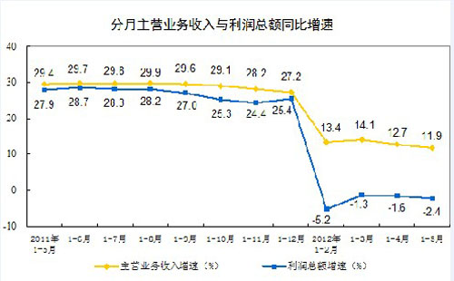 1-5月份,全國規模以上工業企業實現利潤18434億元,同比下降2.4%。5月當月實現利潤3909億元,同比下降5.3%。