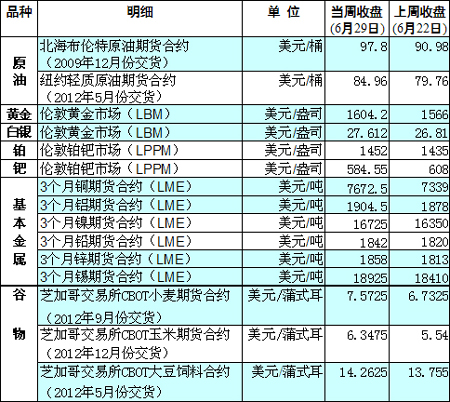 國際大宗商品期貨價格明細表[2012-06-18]