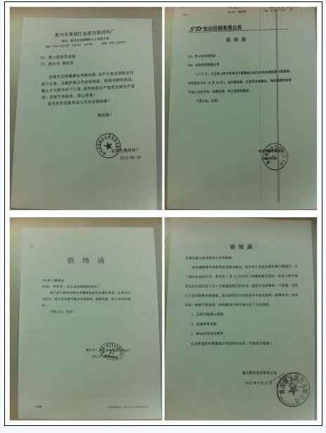 根據目前獲得的供應商聯絡函,停止供貨的雷士供應商包括惠州一品五金電器塑膠制品廠、重慶雷寶商貿有限公司、金煜包裝材料廠以及世達印刷有限公司。