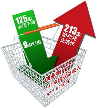 截至8月底,347家在創業板上市的公司2012年中報已全部披露完畢。統計數據顯示,報告期內,347家創業板公司共實現營業總收入合計為837.07億元,平均增長率為20.72%。213家創業板公司在報告期內實現凈利潤同比正增長,占比61.38%。但虧損公司數量較往年有所增加。