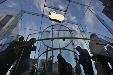 9月19日,顧客造訪美國紐約第五大道上的蘋果公司商店。