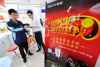 事實上,國美、蘇寧兩大家電連鎖巨頭早早就開始了雙節市場的促銷。9月21日,北京國美宣布,即日起至10月14日,將正式啟動長達25天的中秋、十一黃金周大型促銷活動。