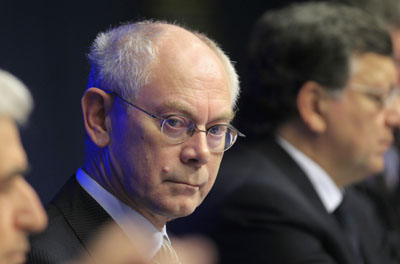 歐洲理事會主席范龍佩18日在歐盟峰會舉行之前出席新聞發布會。峰會將審議由范龍佩發布的《邁向真正的經濟與貨幣聯盟》中期報告。范龍佩稱,該報告“包含了我們朝著實現真正的經濟與貨幣聯盟目標邁進的第二階段工作,以及許多需要進一步探討的理念”。