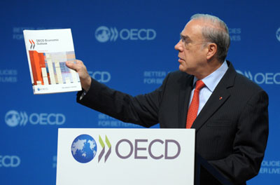 總部位于巴黎的經(jīng)濟(jì)合作與發(fā)展組織(簡稱經(jīng)合組織)27日發(fā)布新版“經(jīng)濟(jì)展望報(bào)告”。經(jīng)合組織秘書長安赫爾·古里亞當(dāng)日在發(fā)布會上表示,全球經(jīng)濟(jì)明年將出現(xiàn)顯著下滑,而歐債危機(jī)“當(dāng)前仍是世界經(jīng)濟(jì)最大威脅”。古里亞指出,盡管各國已采取應(yīng)對措施,但一些國家的債務(wù)永久化問題有可能引發(fā)連鎖事件,將全球經(jīng)濟(jì)拖入衰退之中。經(jīng)合組織在報(bào)告中下調(diào)了全球經(jīng)濟(jì)增長預(yù)期,預(yù)計(jì)今年全球經(jīng)濟(jì)僅增長2.9%,明年增幅為3.4%。此外,經(jīng)合組織還預(yù)期,美國今年經(jīng)濟(jì)增速由此前預(yù)計(jì)的2.6%降至2.2%,2013年增速將降至2.0%。