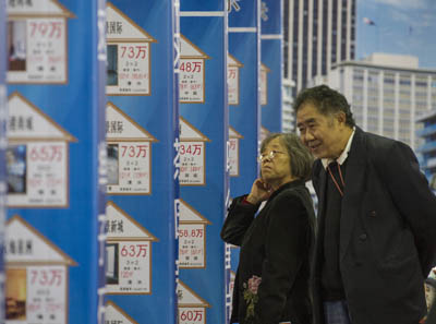 2012重慶秋季房交會日前在南坪國際會展中心開幕,共有109家房地產開發企業參展,推出新房50811套,大部分樓盤都在本次房交會上推出打折促銷的口號。除本土樓盤外,海南、貴陽等地均有一定數量樓盤參展。此外,15家房產中介推出14.3萬套二手住房房源。圖為11月23日,市民在二手房交易區淘房子。
