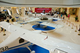 二、商務機展區(qū),是由無限航空打造的中國首家私人飛機展銷交易中心,分為商務機體驗區(qū)、飛行用品商店、小型飛機實物展示等部分;