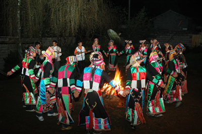 節(jié)日里活動(dòng)內(nèi)容豐富多彩,除夕之夜,老人以酒、肉、粑粑祭祀天地祖先神靈,為感謝耕牛一年勞作,家犬給人類(lèi)帶來(lái)谷種,先給它們品嘗一點(diǎn)年節(jié)食品。人們身著節(jié)日盛裝,來(lái)到選定的場(chǎng)址,聚集在一起吹笙、笛,彈篾弦、三弦等樂(lè)器,載歌載舞,通宵達(dá)旦,歡慶佳節(jié)。