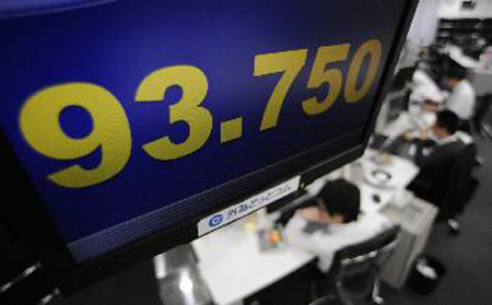 2月6日,在日本東京的一家股市交易所,工作人員在顯示美元兌日元匯率的電子顯示屏下工作。 當日,東京外匯市場美元兌日元匯率升破1比93,日元走低提振出口類股推升6日日經股指飆漲3.77%。 今年年初以來,由于安倍傾向于激進的貨幣政策,日元對各主要貨幣一直呈貶值走勢。日元貶值令出口類企業盈利前景向好。 目前,市場多數觀點認為,如果日本政府維持貨幣激進立場,日元走弱趨勢一段時間還將持續。