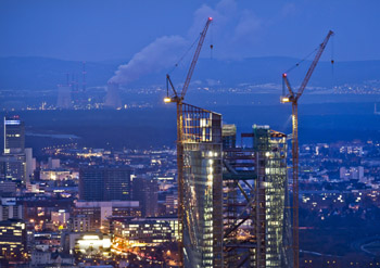 據(jù)統(tǒng)計,德國國內(nèi)共有13座150米以上的摩天大樓,其中12座都位于法蘭克福,如果算上目前還未完工的歐洲央行新大樓和另外一座Taunusturm大樓,屆時摩天大樓總數(shù)將達(dá)到14座。法蘭克福的摩天大樓大多數(shù)都集中在和美茵河北岸的金融區(qū),為辦公用樓。