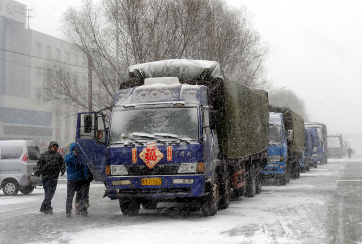 去冬今春以來,黑龍江省雪大路滑,道路不好走。雙興村子里面的路是土路,去往鎮里的公路雖然是水泥路,但非常窄,兩臺大車很難錯開。連續的降雪還使路面非常光滑,運糧車在有不少積雪的車轍中緩慢移動。