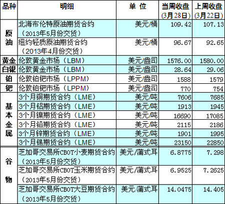 國際大宗商品期貨價(jià)格明細(xì)表[2013-04-01]