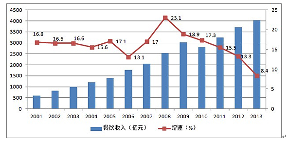 圖1:2001-2013年間1-2月餐飲業情況對比