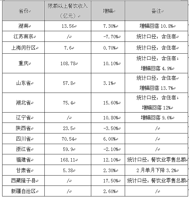 表1.2013年1-2月部分省市餐飲業發展情況匯總