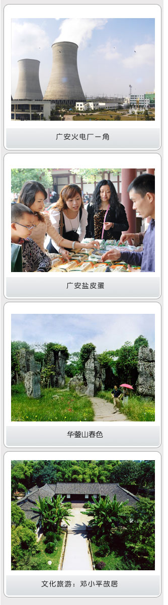 古老而又年輕的“川東門(mén)戶(hù)” 廣安市位于四川東部,呈扇形分布于川中丘陵與川東平行嶺谷兩大地形區(qū)之間,是三峽庫(kù)區(qū)發(fā)展的接力帶,有“川東門(mén)戶(hù)”之稱(chēng)。
