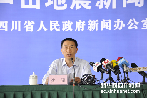 4月22日,四川省衛(wèi)生廳廳長(zhǎng)沈驥介紹地震災(zāi)區(qū)醫(yī)療救治、衛(wèi)生防疫等情況。 攝影/馬迪
